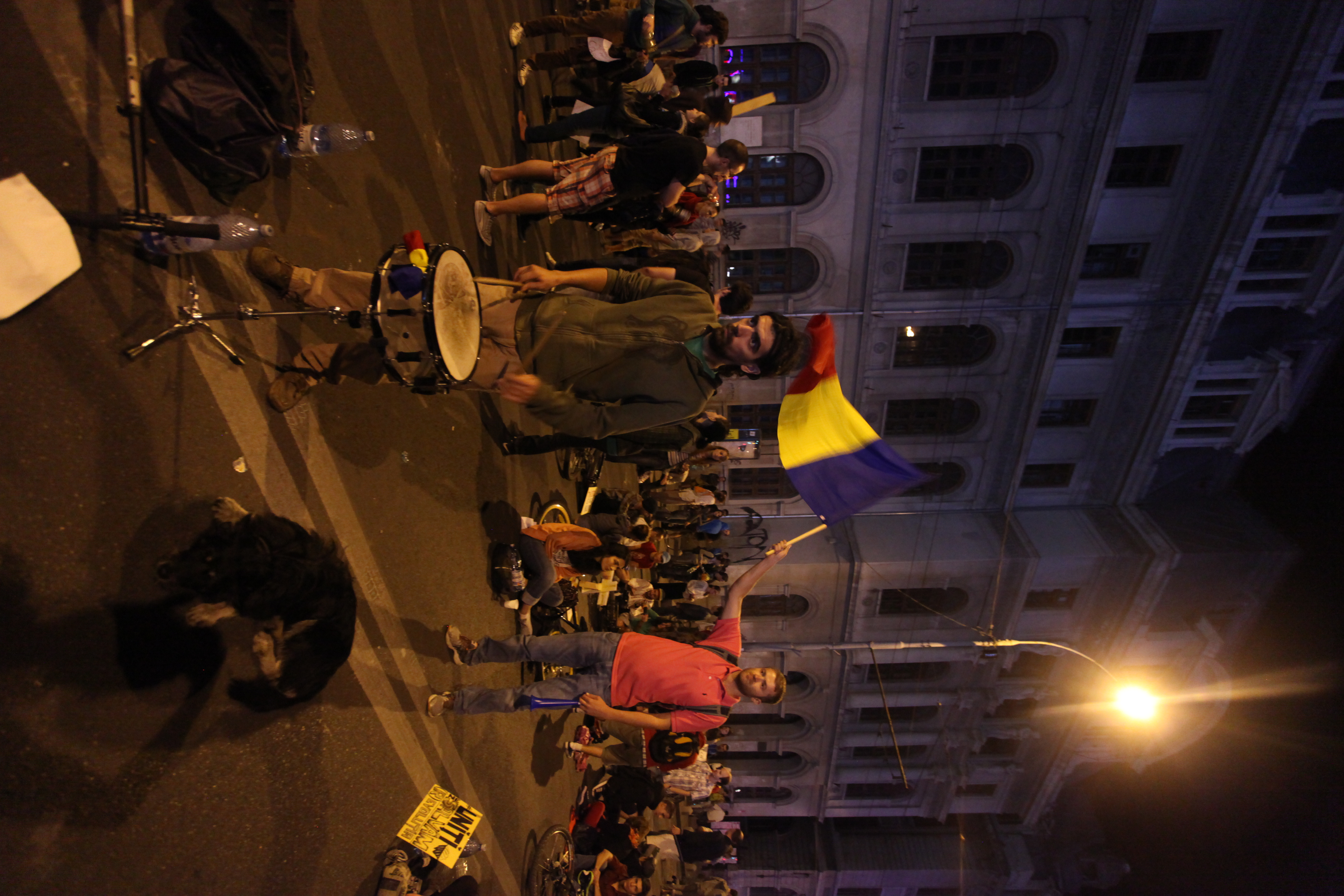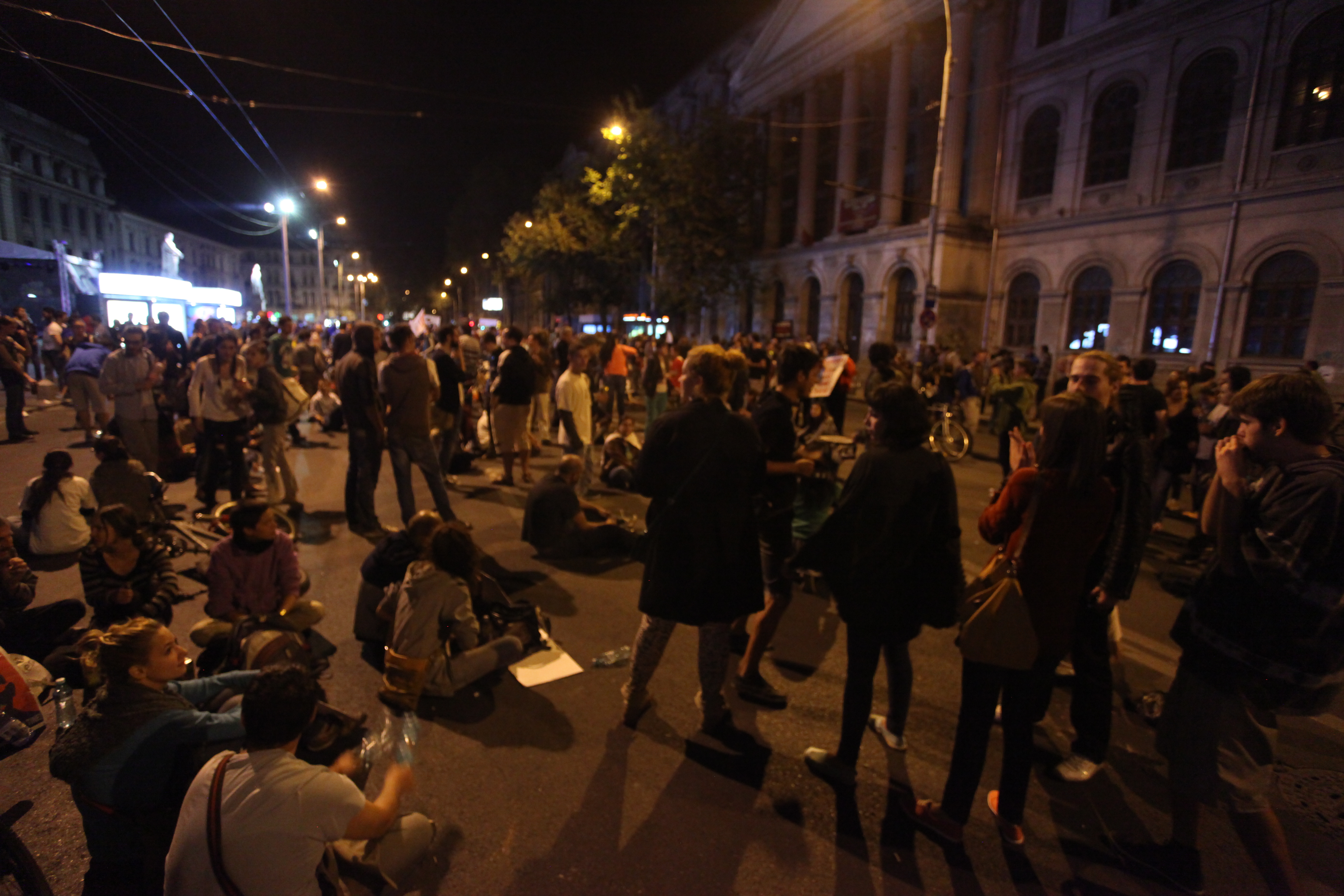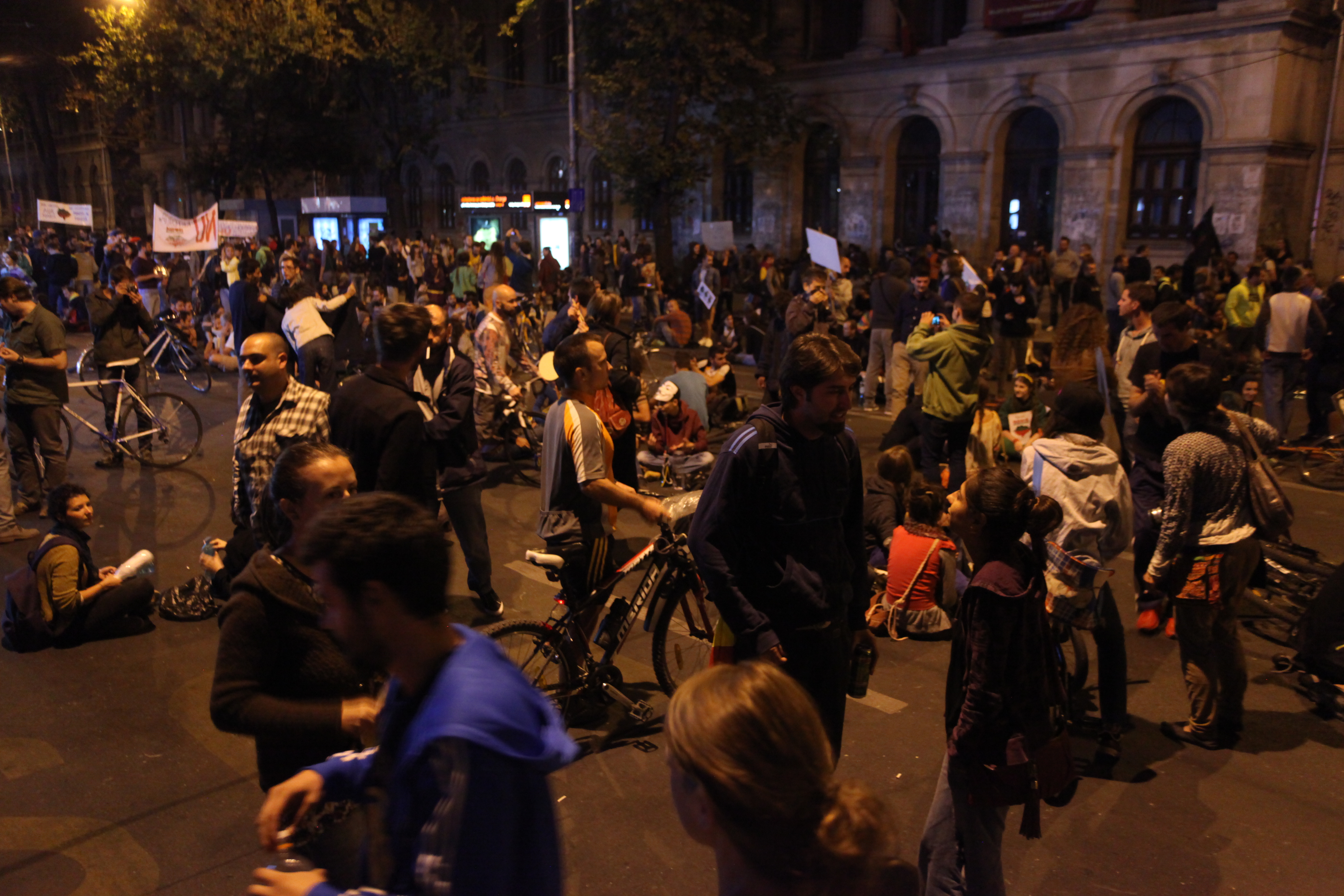 Nasul Tv a transmis imagini din Piata Universitatii, la miezul noptii, cand Bulevardul Regina Elisabeta a fost blocat de cei 2.000 de manifestanti.