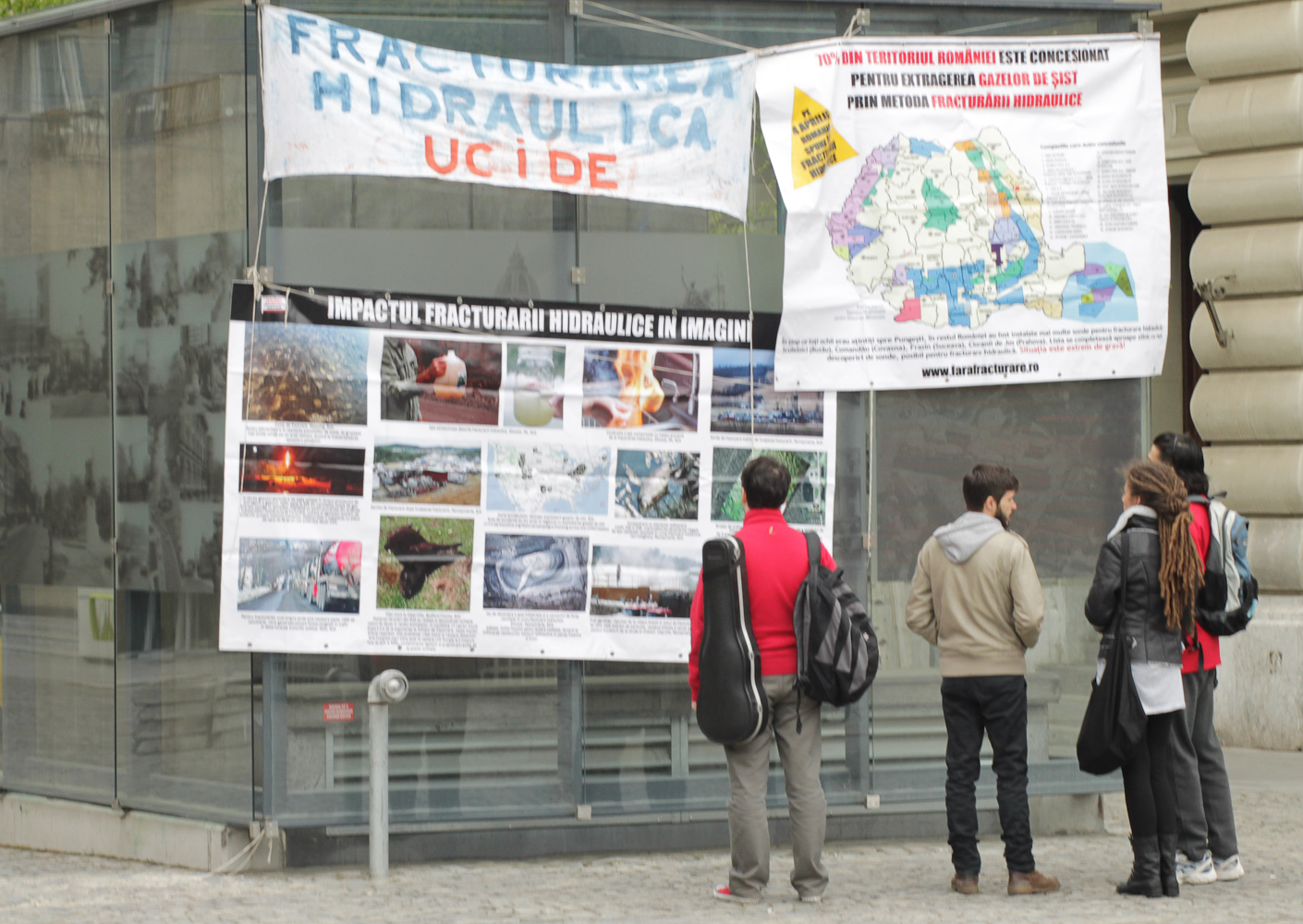 Aproximativ 600 de persoane au sarbatorit astazi, in Piata Universitatii, Ziua Nationala de Protest impotriva Fracturarii Hidraulice. Protestatarii adunati au scandat, au fluturat steaguri si au tinut discusuri in fata multimii.
