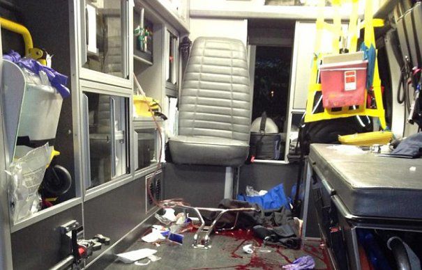 Un paramedic american a postat pe Imgur decorul absolut terifiant în care își desfășoară activitatea: interiorul unei ambulanțe cu care a fost transportată victima unui atac armat care sângerase abundent.