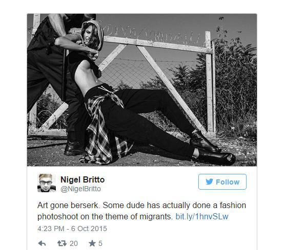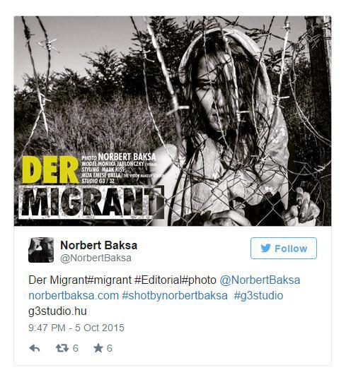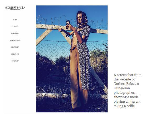 Săptămâna aceasta, fotograful maghiar Norbert Baksa a prezentat 13 imagini pe site-ul său şi pe contul de Twitter, în care prezintă câteva fotomodele „refugiate”, îmbrăcate în haine de lux. Ideea acestuia a scandalizat opinia publică, scrie nytimes.com.