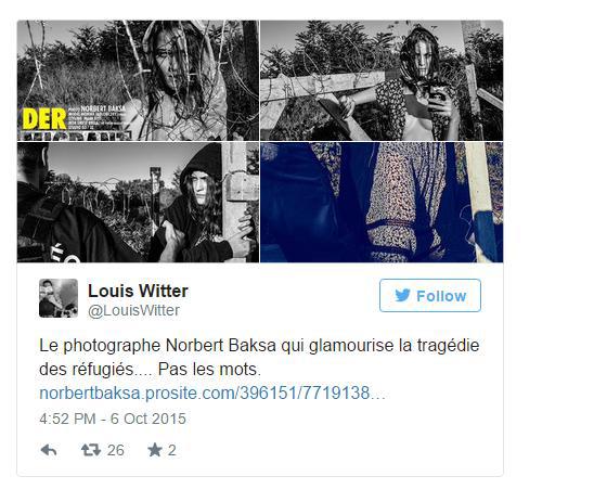Unele din fotografiile artistului au fost ridiculizate pe reţelele de socializare şi Norbert a deschis o adevărată „cutie a Pandorei”. De exemplu, @LouisWitter scrie că „fotograful Norbert Baksa duce în derizoriu tragedia refugiaţilor”, lucru care îl lasă „fără cuvinte”.