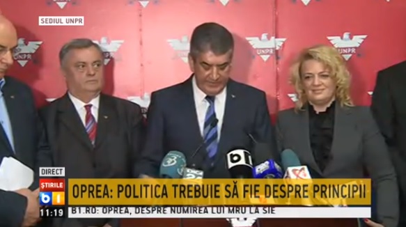 În cadrul unei conferințe de presă organizată luni la sediul UNPR, Oprea a anunțat că partidul pe care îl conduce a fuzionat, prin absorție, cu PPDD, formațiune condusă de Simona Mann.