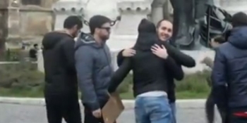 Salah Elddine Kridech a ieşit în Piaţa Unirii, considerată kilometrul zero al Clujului, afişând o pancartă în care mărturisea că aparţine religiei musulmane. A avut şi o solicitare pentru clujeni, şi anume să-i ofere îmbrăţişări. Iar trecătorii s-au conformat.