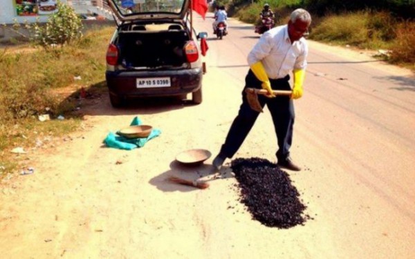 Un bătrân din India a decis să-şi cheltuiască propria pensie pentru a repara gropile din oraşul său natal, Hyderabad. Gangadhara Tilak Katnam, în vârstă de 66 de ani, este poreclit „doctorul de drumuri”, pentru că până acum a reparat singur peste o mie de gropi de pe străzile localităţii.