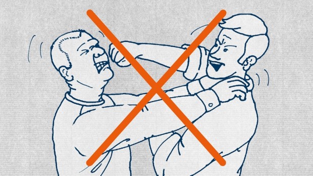 Imaginile ii invata pe refugiati sa nu hartuiasca sexual femeile, sa nu-si bata copiii, sa nu agreseze cuplurile de homosexuali, dar si cum sa poarte o conversatie sau sa ceara ajutor si sunt amenintati cu inchisoarea sau cu refuzarea azilului daca se iau la bataie.