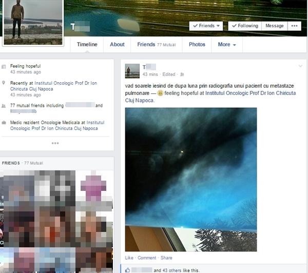 ”Vad soarele iesind de dupa luna prin radiografia unui pacient cu metastaze pulmonare”, a scris medicul rezident, pe Facebook, și și-a precizat și starea în postarea făcută: ”Feeling hopeful at Institutul Oncologic Prof Dr Ion Chiricuta Cluj-Napoca”, relatează stiridecluj.ro