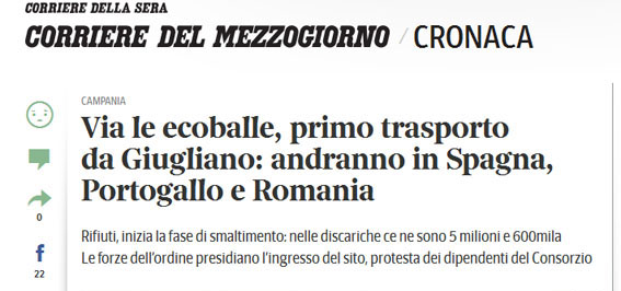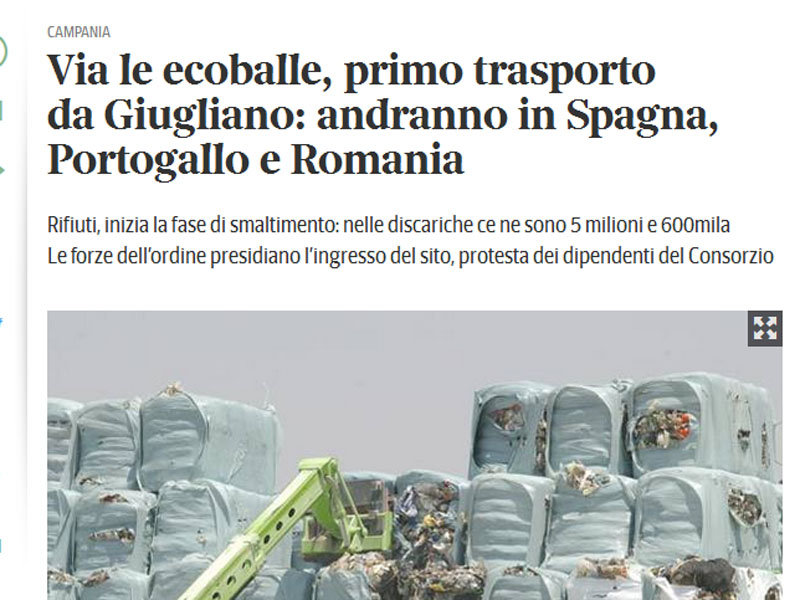 Luni,30 mai, a fost o zi importantă pentru regiunea Campania din Italia: a început megaoperaţiunea de eliminare a celor 5,6 milioane de baloturi de gunoi (aşa numitele ecoballe), acumulate în diferite situri de stocare cu ocazia crizelor gunoaielor din anii trecuţi, informeaza gazetaromaneasca.ro.