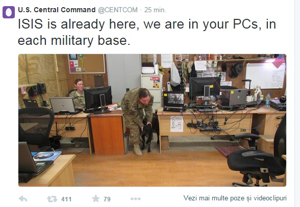 Pe acest cont se putea citi „ISI este deja aici, suntem in computerele voastre, in fiecare baza militara”.