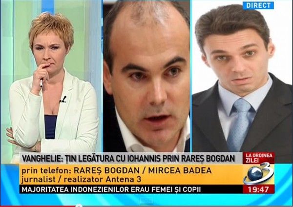 Mircea Badea a sunat, vineri seara, în direct la Antena 3, exact în momentul în care se afla prin telefon și Rareș Bogdan pentru a explica prezența numelui său în interceptările din dosarul în care Marian Vanghelie a fost arestat pentru 30 de zile.