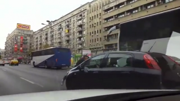Imagini socante in centrul Capitalei, unde un tanar a fost purtat zeci de metri pe capota unei masini condusa de o femeie.
