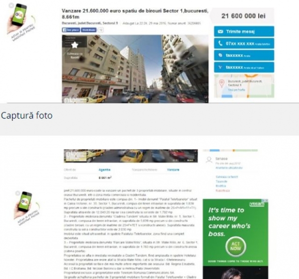 În prezent, atât anunțul de pe OLX cât și disponibilitatea de vânzare a clădirii din partea Telecom au dispărut.