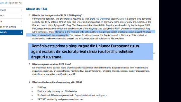 Compania cipriota si-a facut si un site – RIFA, Romanian International Flag Administration unde putem vedea ca Romania este prima tara care isi cedeaza drepturile asupra pavilionului.