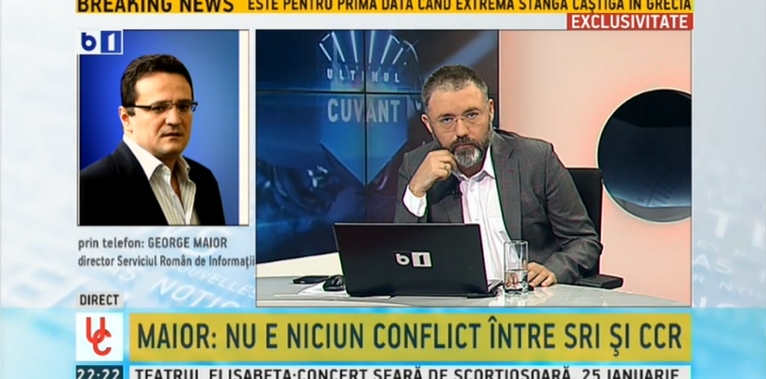 George Maior, directorul SRI, a intervenit duminică seară la B1 Tv, la cererea sa, spunând că nu atacă CCR şi doar că are dreptul la libertate de expresie.