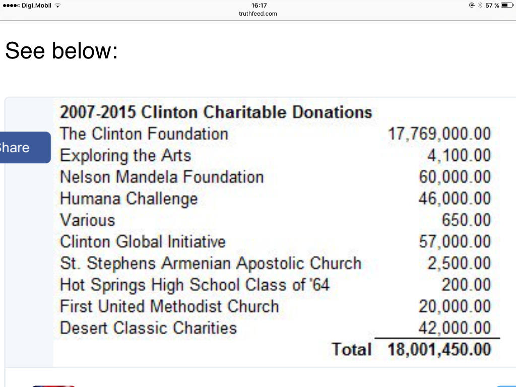 Dar stiti catre catre cine au Donat banii ?! Cei 18 milioane de dolari ?! Catre Fundatia Clinton !!! Peste 99% din cei 18 milioane de dolari s-au „miscat” dintr-un buzunar in altul ! Iar madam Clinton il acuza pe Trump ca nu si-a platit taxele ! Cita ipocrizie! Zici ca Hillary e de pe Dimbovita sau din Teleormanul lui Dragnea!