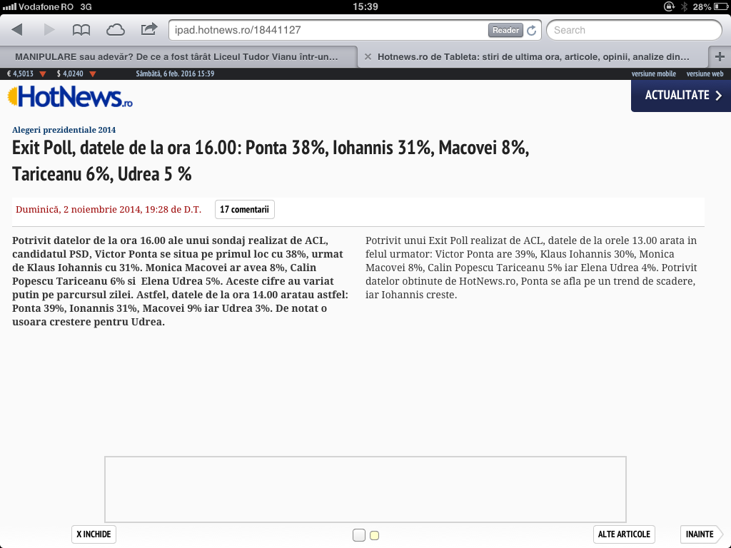 – Iohannis a scazut desi era in crestere !!!