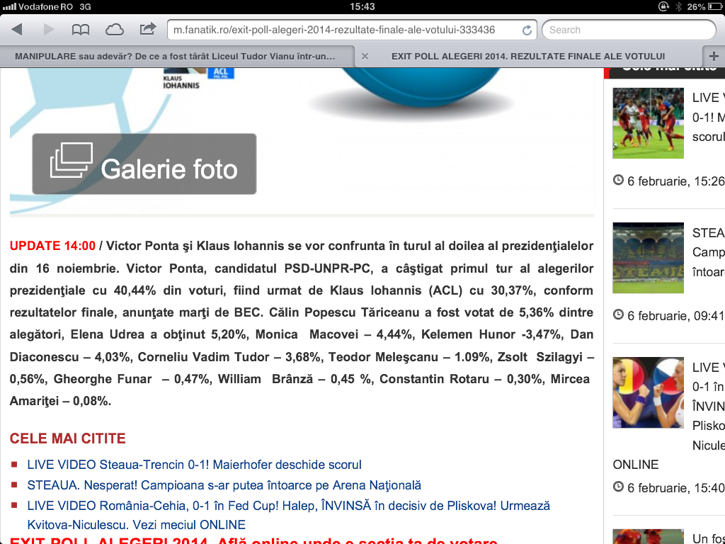 Doua procente daca ar fi avut in plus, Monica Macovei era astazi Presedintele Romaniei! Ca ne place sau nu de ea, acesta e rezultatul corect al alegerilor din 2014 ! Lucru pe care l-am sustinut si atunci in emisiunea „NASUL”! Fiindca oricine ar fi intrat in turul 2 cu Ponta il batea rau de tot! Cu atit mai mult daca era Macovei !