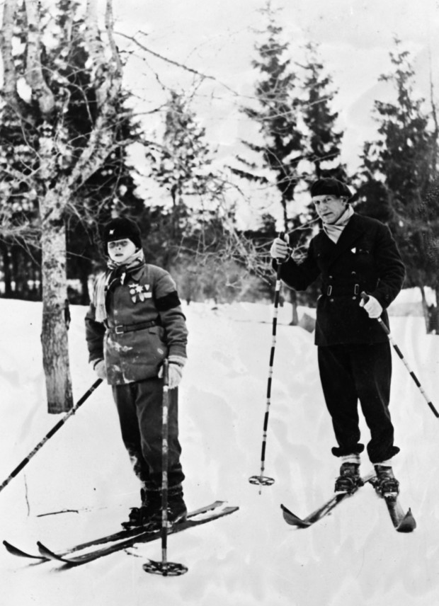 Imagine Getty: Regele Carol II si fiul sau Mihai, la campionatul militar de schi de la Predeal, 4 februarie 1932
