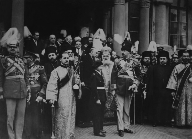 Imagine Getty: Regele Carol II impreuna cu Mihai la slujba religioasa din prima zi a noului an: 1 ianuarie 1932, Bucuresti.