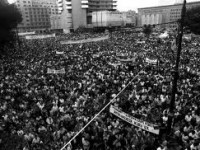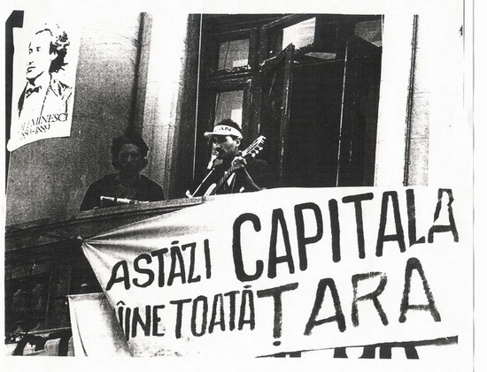 Sunt unul din multii protestatari ai Pietii Universitatii care a durat aproape 2 luni in 1990. Atmosfera era frumoasa, fara violenta de la serviciu veneam in piata si stam pana pe la 10 seara.De la balconul devenit atunci celebru au vorbit oameni minunati, iar Vali Sterian ne antrena in aceste cantece .Am sperat ca se va schimba ceva in aceasta tara din pacate pentru ca puterea era in mana lui Iliescu si ai lui nu s-a schimbat nimic. Ceream includerea puctului 8 de la Timisoara pentru ca la alegerile din 1990 sa nu poata candida activistii, securistii si cei care au nenorocit pe romani in regimul comunist.Binenteles ca nu s-a acceptat acest lucru. Cum altfel mai puteau sa fure aceasta tara si pe acest popor indobitocit de comunisti? Cred ca televiziunea nationala are imagini, chiar daca nu transmitea nimic pe motiv de ceata. Pentru ca imaginile erau date la „militie” (politie nu ise putea spune) pentru identificarea noastra a celor de aici.Aici l-am intalnit pe C.Ticu Dumitrescu care a spus despre parlament ca este parlamentul rusinii nationale, din pacate dupa 22 de ani acest parlament pentru mine este tot cel al rusinii nationale.Ar trebui societatea civila sa ceara sa se prezinte macar acum dupa 22 de ani aceste imagini pentru a intelege si tinerii idealurile pe care le aveau cei din piata universitatii. Nu alerga nimeni dupa indemnizatii de revolutionari sau dupa bani. Doar asa daca tinerii vor intelege ce a distrus Iliescu prin neacceptarea pct.8 de la Timisoara mai avem o speranta cei de varsta mea ca Romania se va schimba.