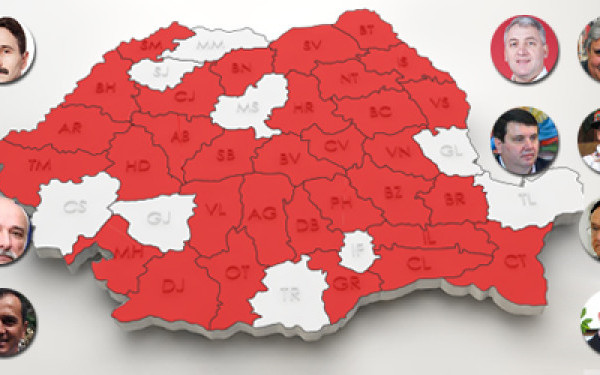 Harta de mai jos prezinta doar situatia presedintilor si vicepresedintilor de Consilii Judetene, insa chiar si asa 32 din cele 41 de judete au cel putin un sef cu probleme in justitie. Iar daca am fi luat in calcul si membrii simpli ai Consiliilor Judetene, nu ar mai existat nicio pata alba pe harta.