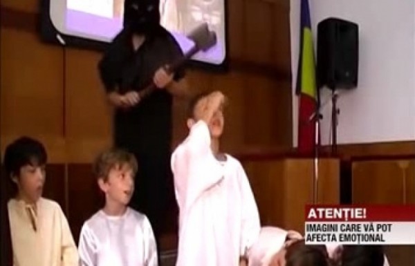 O filmare de trei minute înregistrată la o serbare de sfârşit de an şi care prezintă o scenetă despre uciderea familiei lui Constantin Brâncoveanu a declanşat controverse la Constanţa, după ce în imagini apar copii cu vârste de opt-nouă ani, care sunt ”decapitaţi” de un ”călău”.