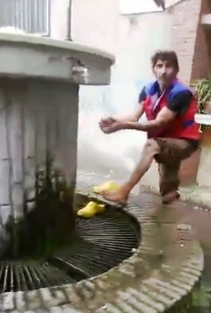 Un român, om al străzii în Italia, care își spăla picioarele la o cișmea a fost filmat de un italian. Acesta îi spune cuvinte urâte și îl invită să ”se întoarcă la el acasă” dacă nu este în stare să se comporte bine. Același Parziale, publică filmul în care îl mustră pe român pe Facebook și filmarea devine imediat virală. Totul are loc la Nocera Inferiore, în Campania, iar întâmplarea o povestește „Il Mattino”, citat de gazetaromaneasca.com.