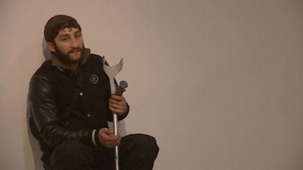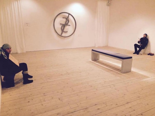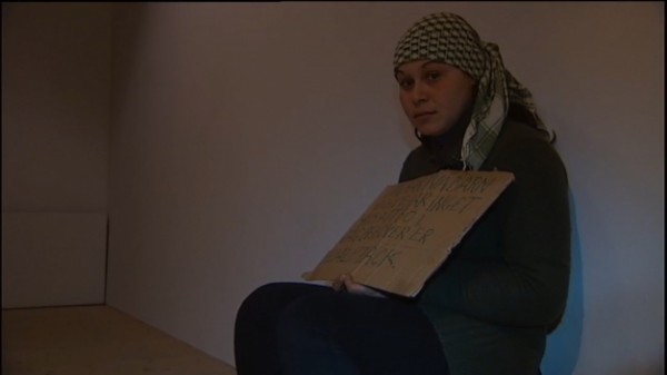 Într-un spaţiu minimalist, Marcela Chereşi ţine în mâini o bucată de carton pe care e scris în suedeză un text despre cât de greu îi e să supravieţuiască, iar Luca Lăcătuş stă cu mâna întinsă, cu o cârjă lângă el. Între ei există o bancă pe care vizitatorii se pot aşeza pentru a-i contempla mai bine. Cei doi nu au voie să primească bani de la vizitatori, în schimb sunt plătiţi cu ora pentru timpul petrecut în spaţiul expoziţional Konsthall.