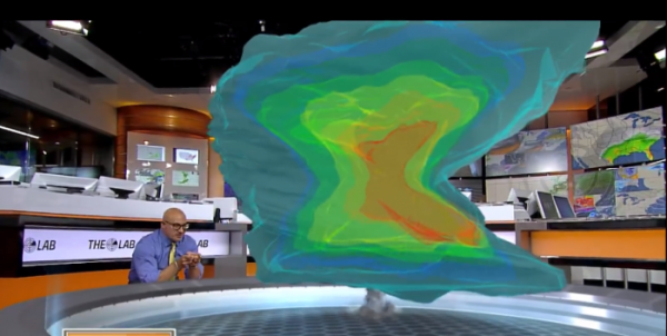 Este absolut uimitor cum jurnalistul Jim Cantore a reuşit să reconstituie o tornadă – ce se întâmplă, cum se formează, ce efecte produce – într-un platou de televiziune.