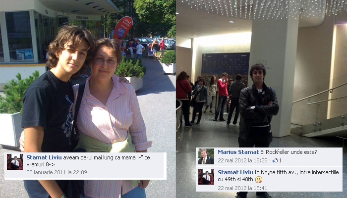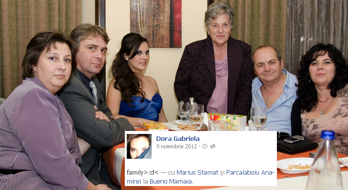 Revenind la contul de Facebook al tânărului cu alocaţie de „handicapat”, trebuie să mai spunem că Liviu Stamat nu a trădat doar crunta contradicţie dintre declaraţia de avere a mamei sale şi sănătatea sa verde, la trup şi minte. A trădat şi alte relaţii de familie care întregesc tabloul moral al personajelor din această poveste. Astfel, în contul său de Facebook apar mai multe fotografii realizate la o petrecerea de majorat, de la Hotelul Bueno din Mamaia, dată de numita Dora-Gabriela Pârcălăboiu. Una dintre acestea îi înfăţişează pe soţii Marius şi Cristina Stamat alături de sărbătorită, de mama acesteia, Ana-Mirei Pârcălăboiu şi alte două persoane. Fotografia a fost etichetată de Dora-Gabriela, cu următorul comentariu: „family>:d< – cu Marius Stamat şi Pârcălăboiu Ana Mirei la Bueno Mamaia”.