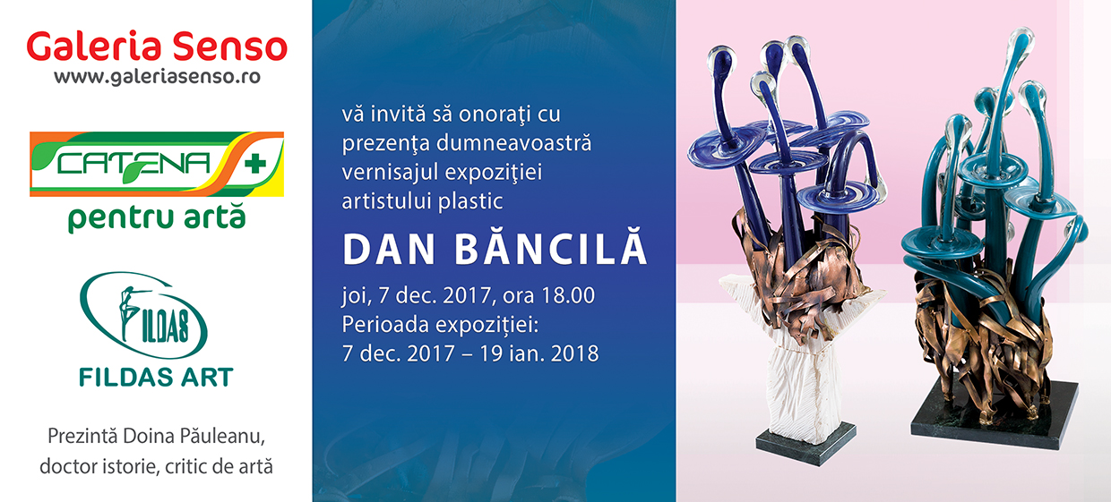 Joi, 7 decembrie 2017, ora 18:00 vă invităm la Galeria de Artă SENSO (Bd. Unirii nr. 15, București) unde va avea loc vernisajul expoziţiei DAN BĂNCILĂ, un artist foarte cunoscut pentru operele sale realizate în sticlă, cristal și bronz. „Bronzul se aliază extraordinar de bine cu limpezimea cristalului” – spunea artistul despre lucrările sale.