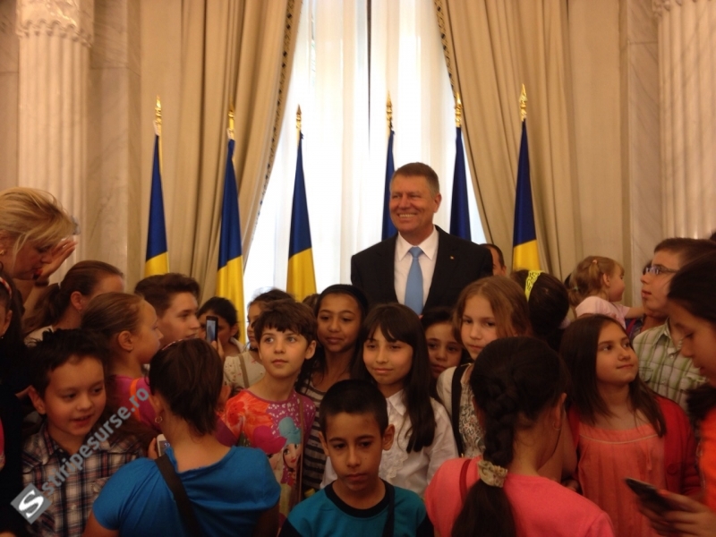 Iohannis a fost luat cu asalt de copii, care au dorit să-şi facă poze cu preşedintele. Anterior, în aşteptarea preşedintelui, copiii s-au întrecut în replici amuzante în faţa microfoanelor. Un copil spera ca preşedintele să-l plimbe cu „BMW-ul lui”, iar alţii repetau cuvinte în limba germană. Întrebaţi ce ştiu despre Traian Băsescu, cei mici au afirmat că acesta a fost preşedinte, dar „l-au dat afară pentru că a tăiat salariile”. Dacă elevii mai mari erau ocupaţi să-şi facă „selfie”-uri, copiii din clasele primare erau nerăbdători să-l vadă pe „Io-hanis”.