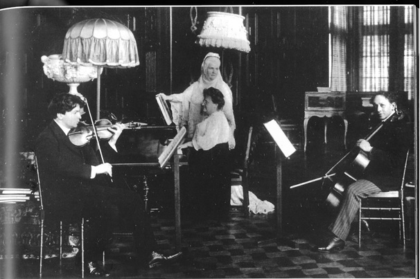 Pentru cititorii acestui blog, care vor să vadă și altceva decît pe Klaus Iohannis ținîndu-și nevasta de talie, reproduc o fotografie care-l surprinde pe tînărul George Enescu cîntînd pentru Regina Elisabeta.