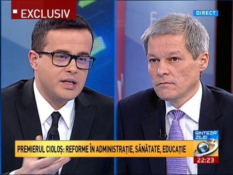 Nu mai departe luna trecută, pe spaţiul Sintezei Zilei, Dacian Cioloş a beneficiat de un interviu înregistrat la Palatul Victoria de veşnic tînăra Cristina Țopescu, un derapaj de la normele meseriei prin entuziasmele exasperante ale realizatoarei față de interlocutor. E mai mult decît semnificativ că interviul a fost difuzat de Mihai Gâdea după un dialog în direct cu Liviu Dragnea, pe post de replică înregistrată dată de Dacian Cioloş.