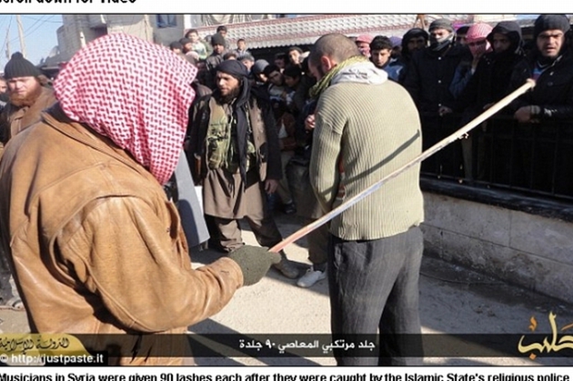 Poliţia ISIS a condamnat mai mulţi muzicieni la 90 de lovituri cu biciul şi cu o bâtă de lemn, deoarece cântau la instrumente ”non-islamice”, mai exact la o claviatură, scrie Daily Mail.
