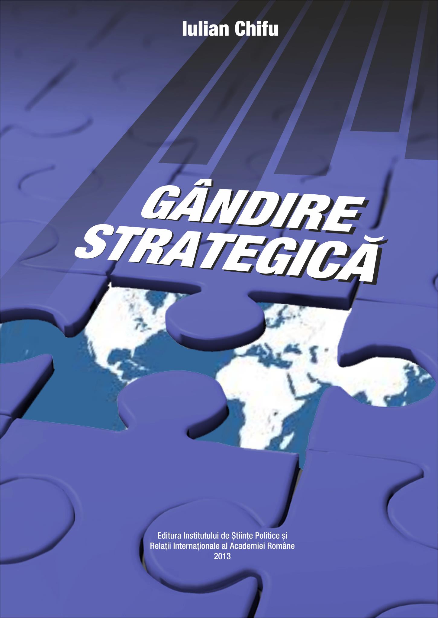 Am avut privilegiul de a citi înainte de publicare cartea ”Gândirea Strategică” de Iulian Chifu – Consilier al Președintelului României, și cu toate că inițial am avut rețineri în ceea ce privește capacitatea mea de analiză la subiectele propuse în volum, m-am pierdut în lectură constatând că ceea ce citesc e de fapt un sumar al frământărilor noastre, ai celor care am urmărit îndeaproape situația politică din ultimii ani, mai mult sau mai puțin informați, mai mult sau mai puțin conștienți de faptul că orice strategie națională trebuie ”așezată” în context internațional pentru ca aceasta să fie cu adevărat o strategie temeinic gândită și nu cârpeli și improvizații în funcție de situații de moment. Un fel de a nu fi ”luați pe nepregătite” dacă vreți, așa cum se-ntâmplă periodic prin repetiție în diverse ocazii neprevăzute pe scena social-politică românească.
