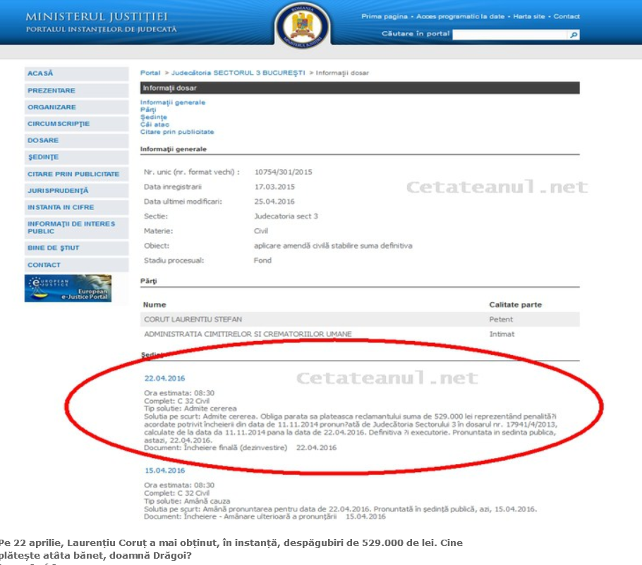 Pe 30 martie, Cetățeanul.net a dezvăluit cazul revoltător al lui Laurențiu Coruț, fostul șef al Serviciului juridic din Administrația Cimitirelor și Crematoriilor Umane (ACCU), omul care câștigă, din bani publici, câte 1000 de lei/zi, pentru că Mafia din Primăria Generală refuză să îl angajeze. Cetățeanul.net a aflat cine este funcționarul vinovat de această situație
