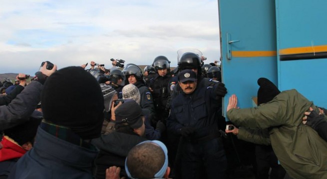 Constantin Paslaru ne-a relatat prin telefon: “Aici este stare de necesitate. S-au inchis toate barurile, oamenii nu au voie sa fie mai mult de trei pe strada, la fiecare colt de ulita sau drum sunt cate patru-cinci jandarmi care nu-i lasa pe oameni sa mearga pe drum, ii trimit acasa, li s-a interzice oamenilor sa se deplaseze iar daca trebuie sunt insotiti de jandarmi, tabara de rezistenta este incercuita de jandarmi – aflati in numar impresionant in zona, nu se poate intra acolo fiind declarata zona de infractionalitate. Masinile de la Chevron s-au intors, oamenii lor lucreaza nestingheriti, sunt paziti din metru in metru de jandarmi si aici este pur si simplu teroare. Nu se poate trece prin zona cu terenul Chevron, pe drumul judetean, decat in trafic, cu masini, dar si acestea sunt oprite si cei din ele sunt legitimati la sange si controlati la toate actele masinilor.”. In zona nu este permis accesul presei, mai informeaza cotidianul citat.