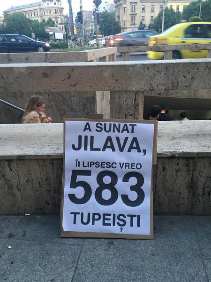 Protestul nu a fost lipsit de probleme. Un barbat care protesta in Piata Universitatii a fost legitimat de jandarmi, deoarece avea o pancarta pe care scria „A sunat Jilava, ii lipsesc 583 de tupeisti.” Jandarmii au declarat ca mesajul este unul instigator la violenta, scrie comisarul.ro.