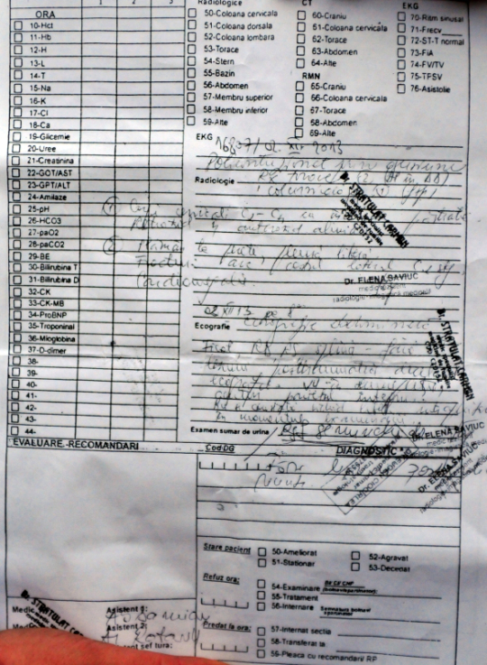 Dar pe Costică Spiridon de ce l-ai bătut, frate jandarm? Că doar nu i-au rupt coastele copiii lui? I-ai rupt coastele de pe partea stîngă unui om bolnav de inimă! Asta o certifică medicii care semnează şi parafează certificatul de mai jos: