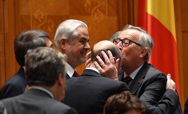 Presedintele Comisiei Europene, Jean Claude Juncker, prezent in Romania cu ocazia aniversarii a zece ani de la aderarea tarii noastre la Uniunea Europeana, a fost foarte prietenos cu politicienii romani. Asta desi multi dintre ei au probleme penale, scrie ziare.com