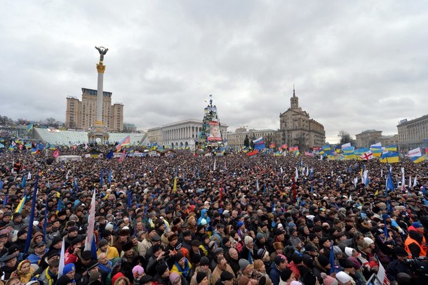 Protestatarii ucrainieni nu au parasit peste noapte piata in care se strang pentru a protesta. Acestia au revenit in strada in cursul saptamanii trecute, numarul maxim atingand cifra de 500.000 de oameni.