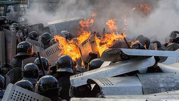 26 de morti, sute de raniti. Scene de razboi fara precedent in ultimele decenii intr-o capitala europeana, cladiri publice si depozite de arme luate cu asalt, regiuni vestice din Ucraina in pragul insurectiei. Kievul expunea ieri dimineata un peisaj apocaliptic, dupa cea mai violenta noapte din ultimele trei luni de proteste antiguvernamentale, cauzata de interventia brutala a trupelor speciale trimise de Ianukovici.