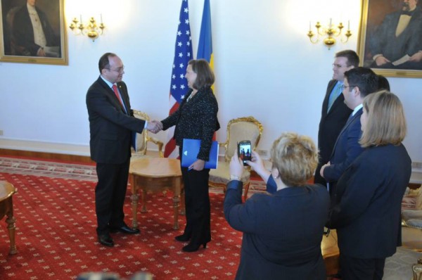 Subsecretarul de stat de la Washington, Victoria Nuland, s-a întâlnit, miercuri dimineaţă, cu preşedintele Klaus Iohannis. Ulterior, Nuland a avut o întrevedere cu ministrul de Externe, Bogdan Aurescu, apoi a mers la Palatul Victoria, pentru discuţii cu premierul Victor Ponta. La Cotroceni s-a discutat mai ales despre extinderea colaborării în domeniul militar şi în cel economic. La această oră, adjunctul secretarului de Stat American, John Kerry, are programată întâlnirea cu preşedinţii celor două Camere ale Parlamentului, Valeriu Zgonea şi Călin Popescu Tăriceanu.