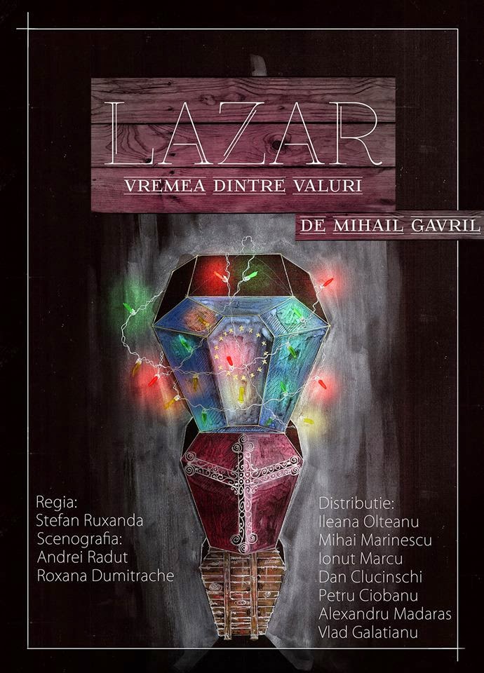 * Volumul cu textul piesei „Lazăr sau vremea dintre valuri“ de Mihail Gavril poate fi achiziționat în seara spectacolului din foaierul Sălii Mici a TNB.