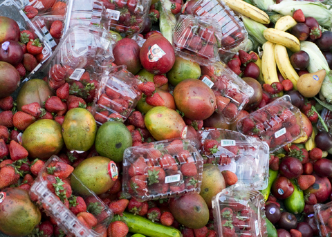 Didier Pla, manager supermarket: „Uitati, acesta este un bun exemplu. In acest pachet de capsuni doar una este stricata. Nu trebuie sa aruncam tot pachetul de capsuni din cauza unui singur fruct.”