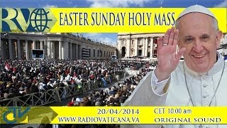 Papa Francisc I oficiază, la Vatican, slujba de Liturghie din prima zi de Paşte. Piaţa San Pietro de la Vatican este plină de zeci de mii credincioşi veniţi din toate colţurile lumii.
