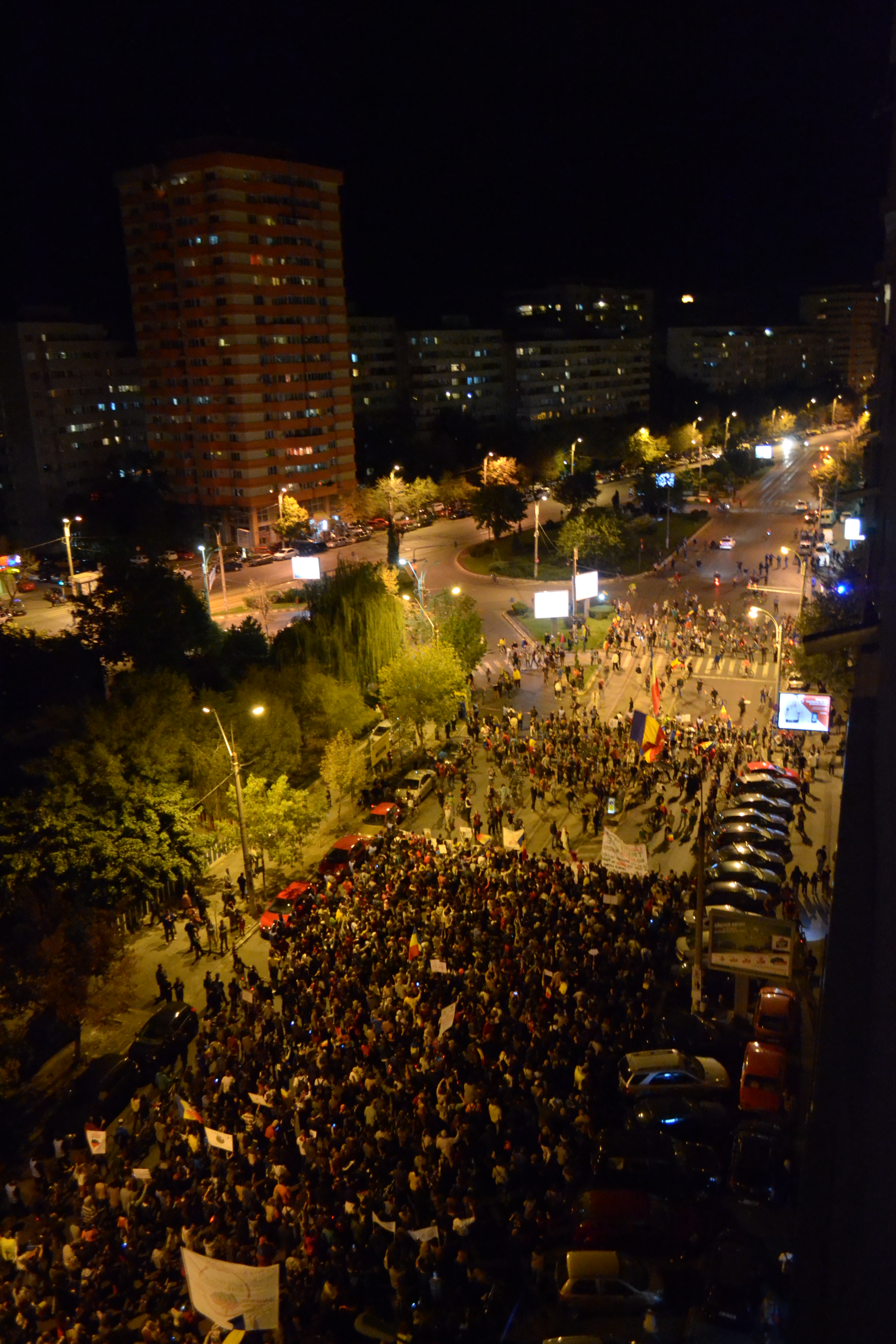 (Update 21.25)- Numarul protestatarilor a scazut. Contestatarii celor 2 mari proiecte se uita la un scurt-metraj filmat in Rosia Montana.