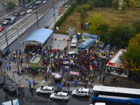 ora 19:57 – aproximativ 5.000 de protestatari au blocat circulatia pe Calea Calarasi si se indreapta spre Piata Universitatii. Linia de tramvai este blocata pe ambele sensuri de mers.