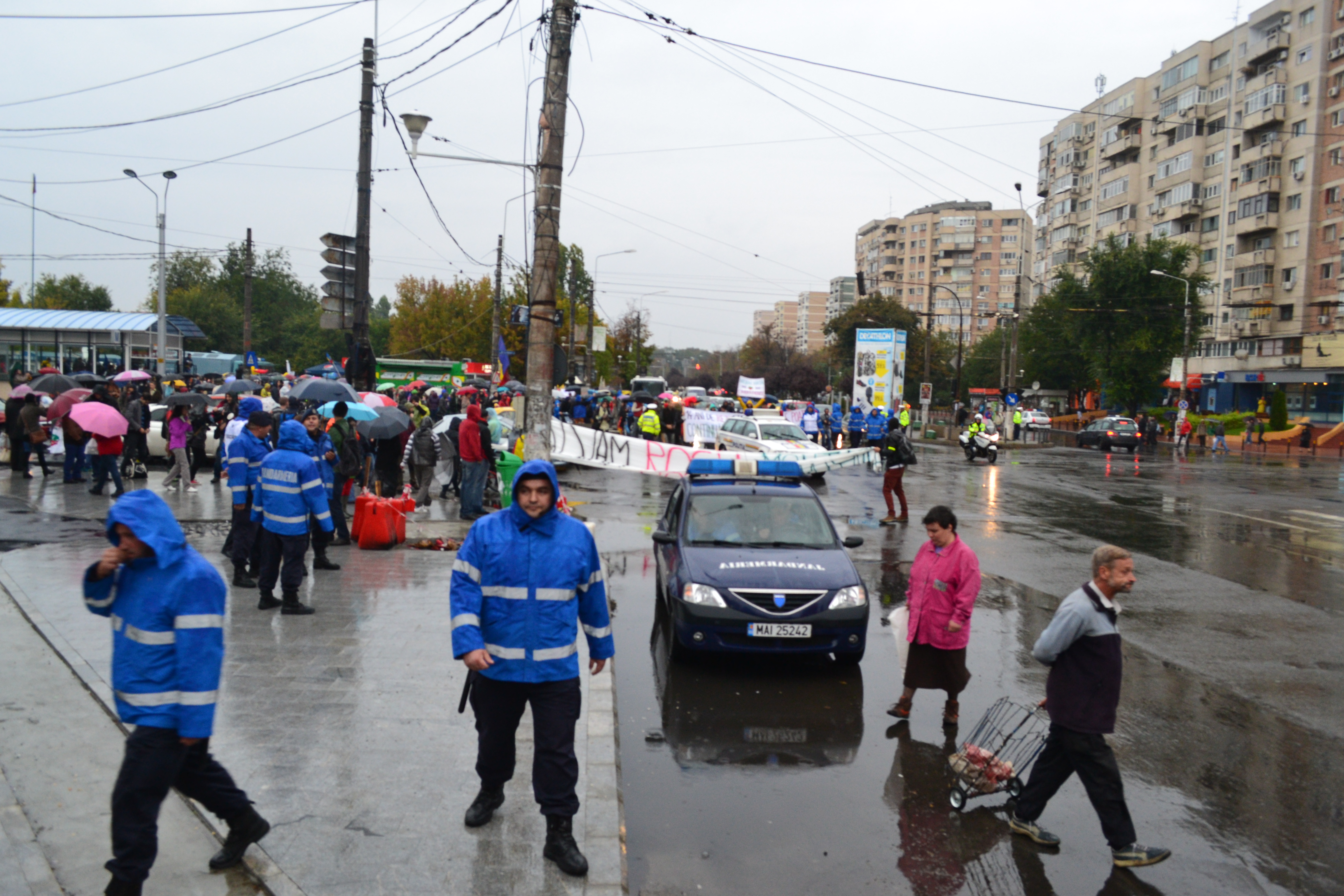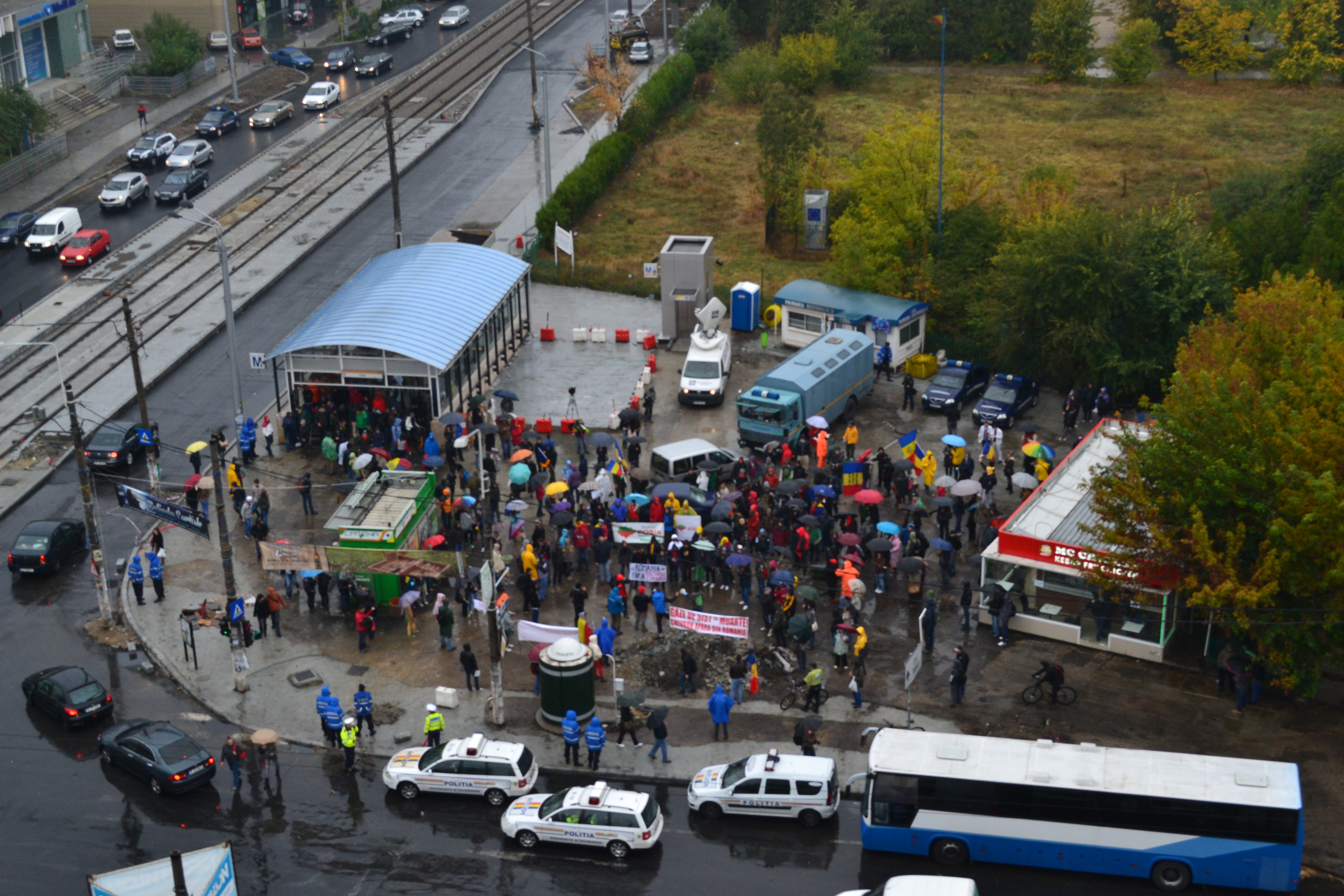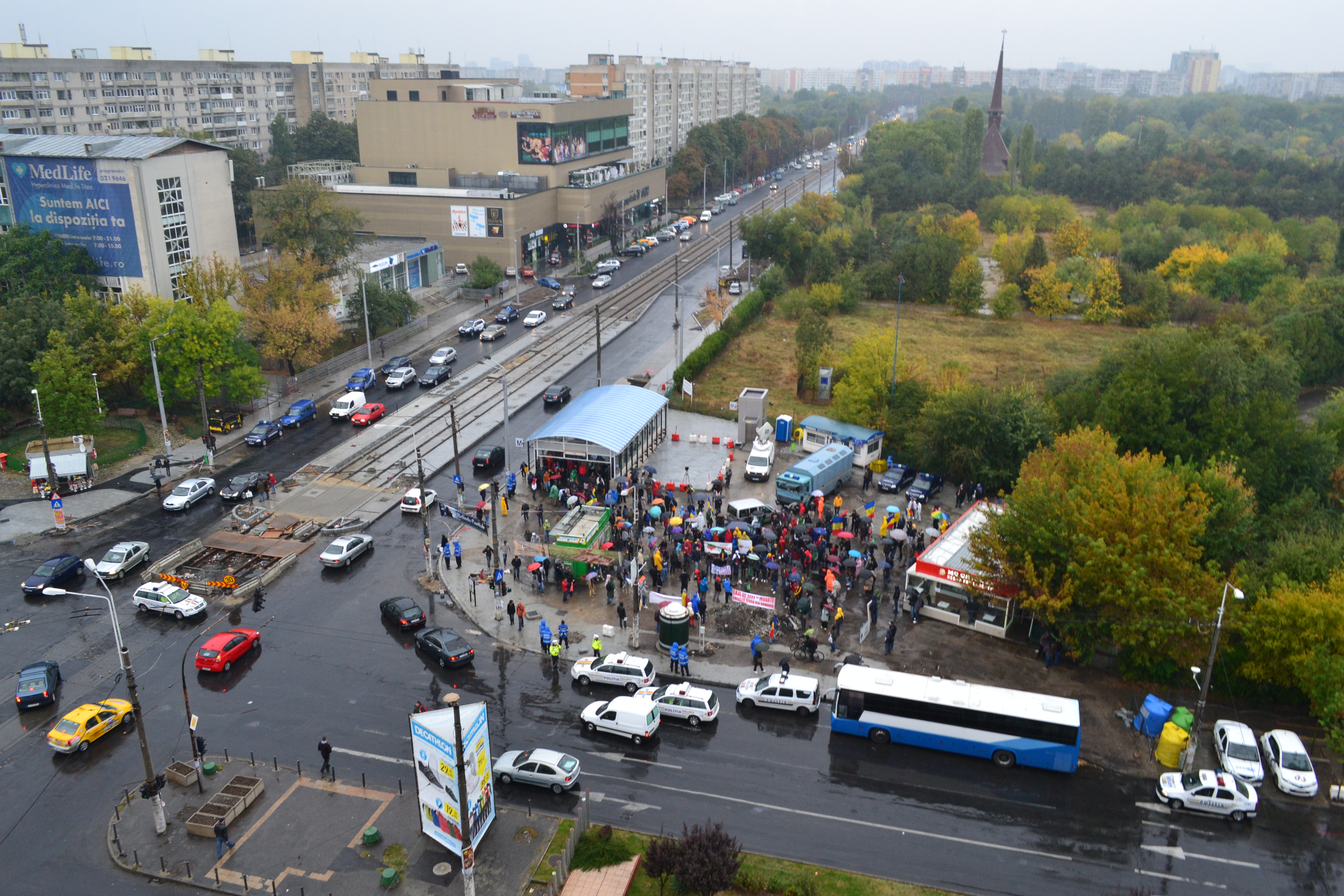 ora 19:57 – aproximativ 5.000 de protestatari au blocat circulatia pe Calea Calarasi si se indreapta spre Piata Universitatii. Linia de tramvai este blocata pe ambele sensuri de mers.