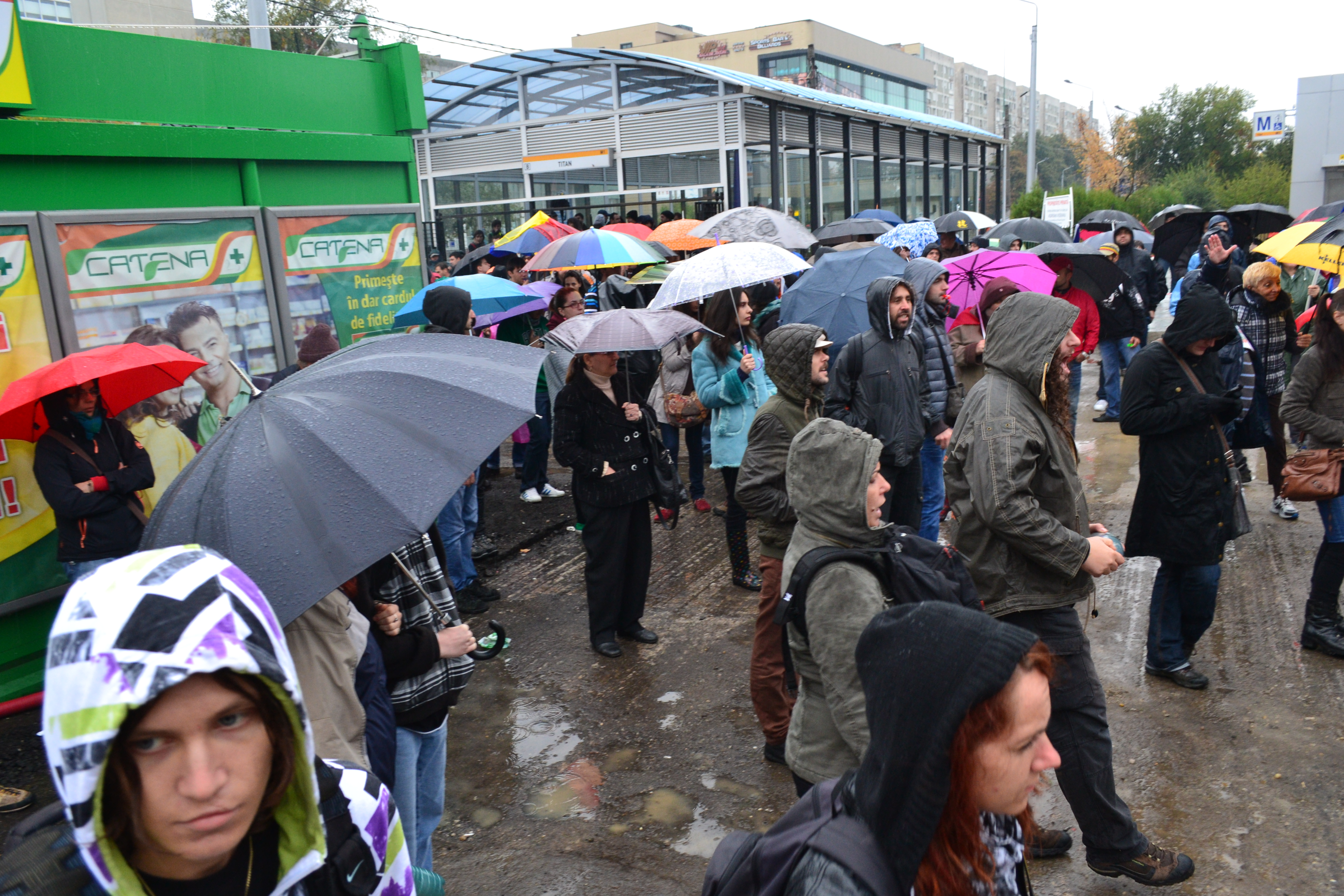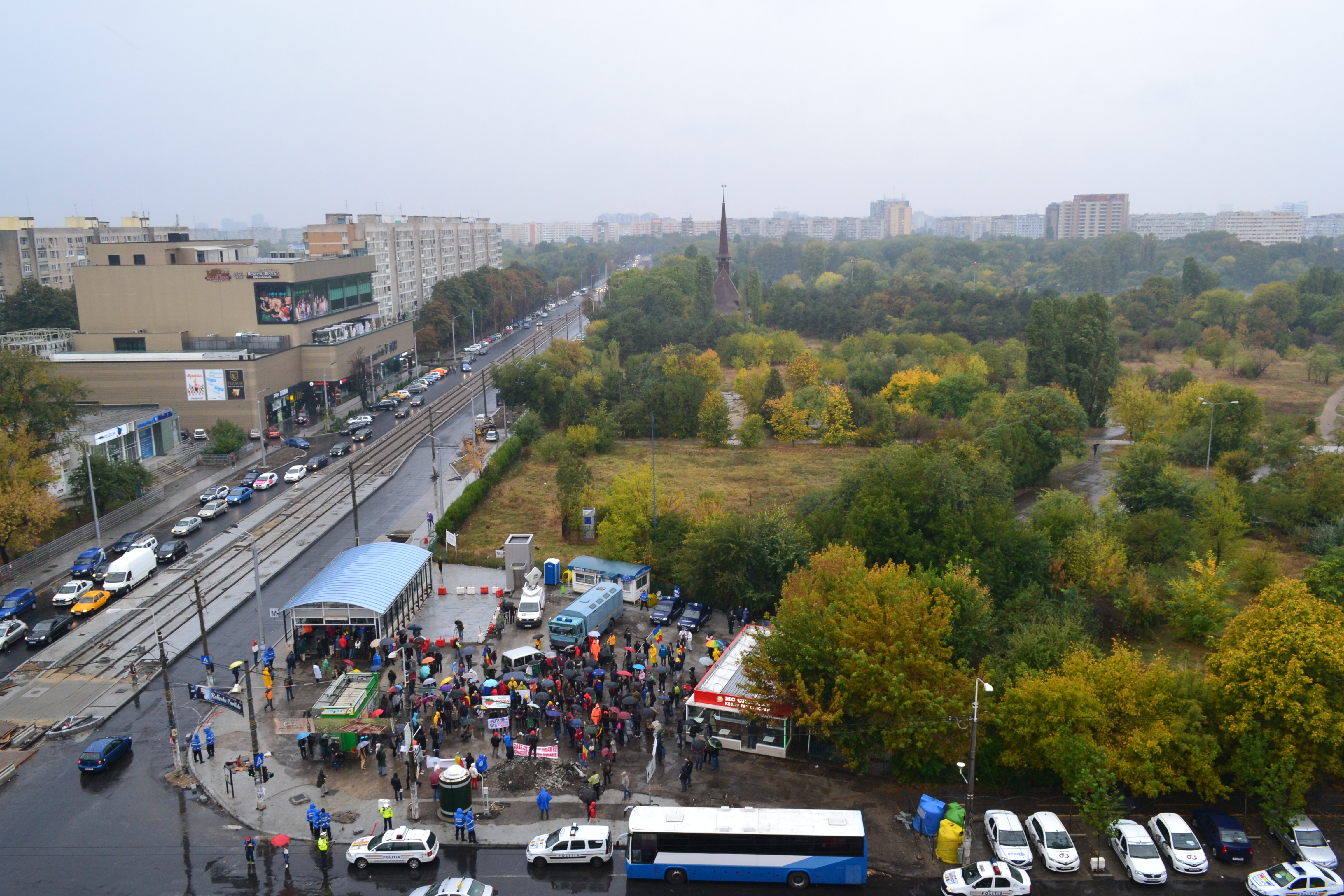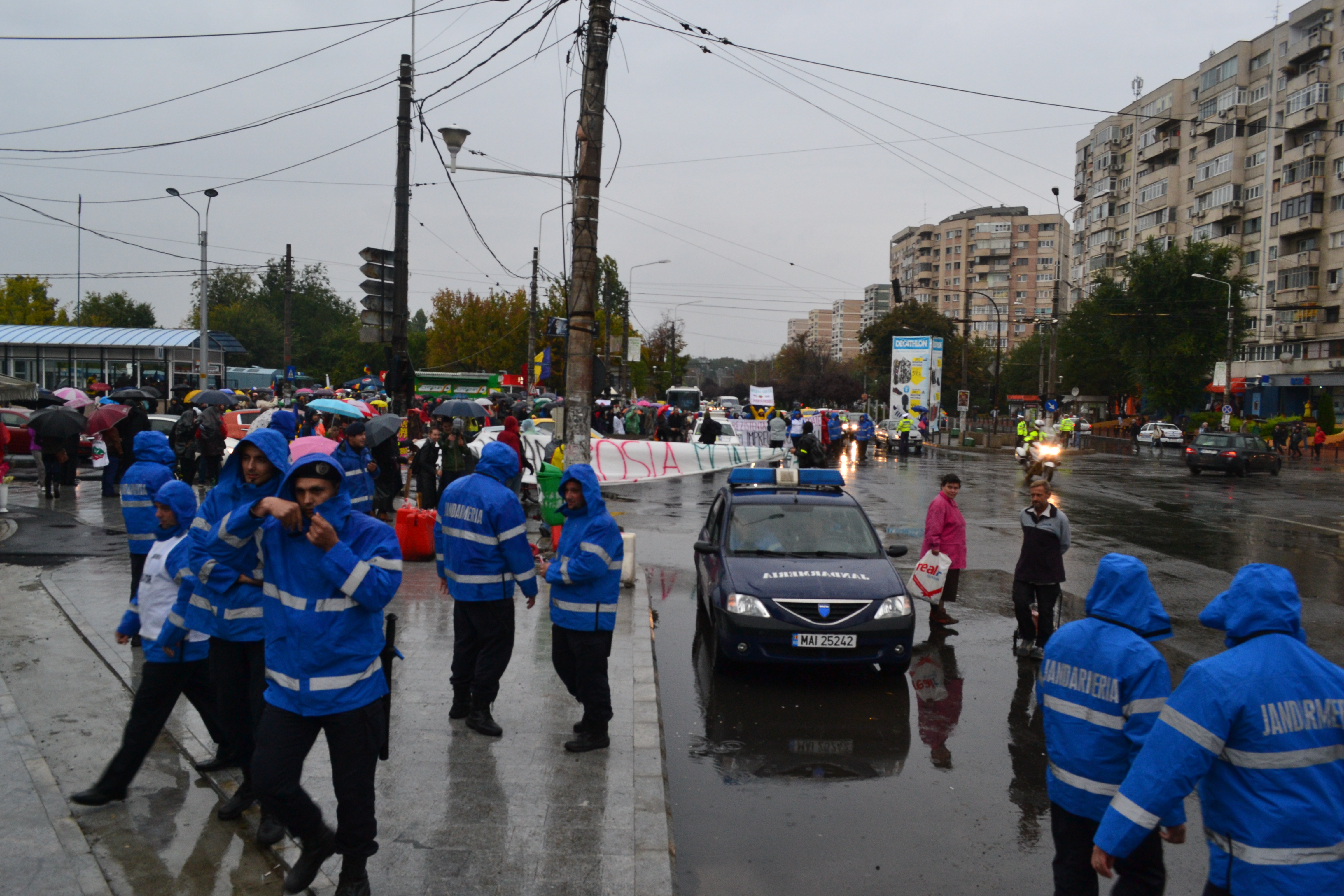 ora 19:57 – aproximativ 5.000 de protestatari au blocat circulatia pe Calea Calarasi si se indreapta spre Piata Universitatii. Linia de tramvai este blocata pe ambele sensuri de mers.